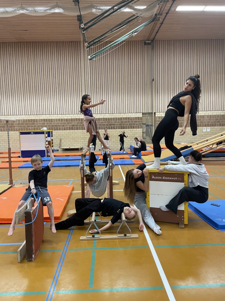 Danach wechselten wir zum Balken – ein völlig neues Gerät aus dem Kunstturnen, das wir sofort ins Herz schlossen: stolz balancierten wir über die schmale Fläche, wagten uns an erste Hüpfer und zum Schluss schlugen wir sogar mutig das Rad.