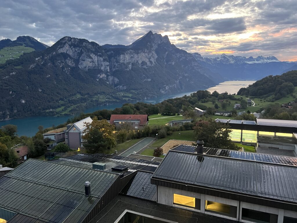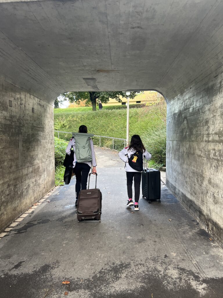 Am Sonntag haben wir fertig gepackt und uns am Bahnhof Altstetten getroffen. Danach sind wir in den Zug in Richtung Zürich HB, dann sind wir umgestiegen in Richtung Näfels. Dort sind wir mit dem Bus eine kurvige Strasse gefahren zum Sportzentrum Kerenzerberg. Dann haben wir den Zimmerschlüssel bekommen und haben im Zimmer ausgepackt.
