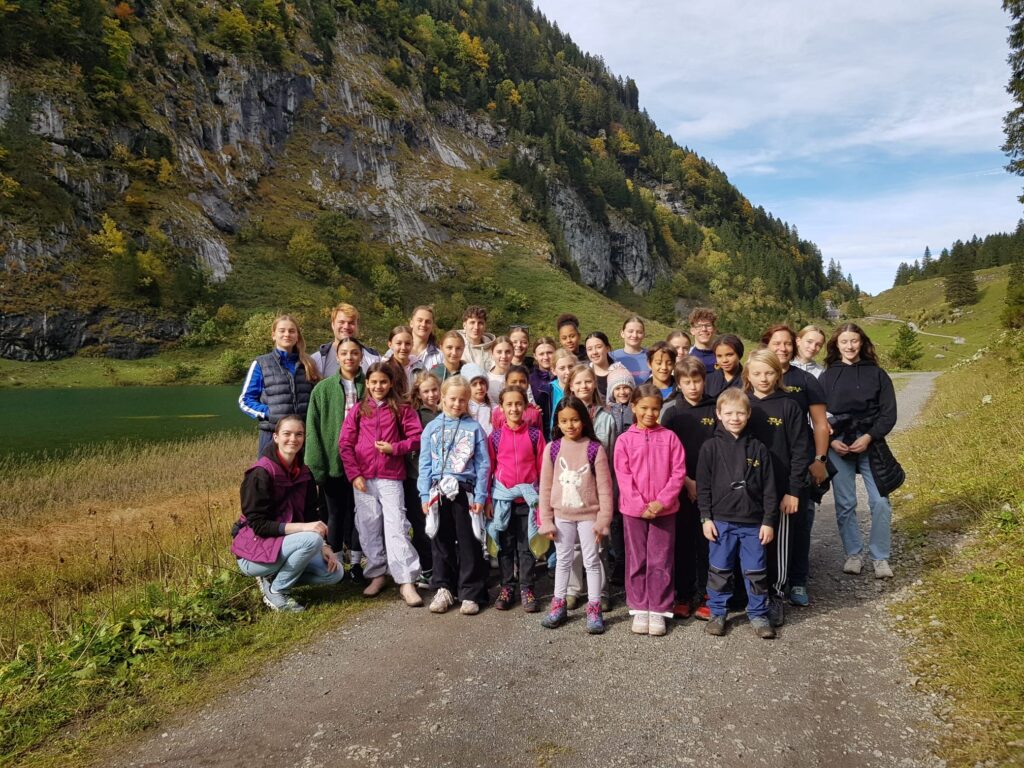 Das Training am Mittwochmorgen war ziemlich anstrengend, da wir die zwei Tage zuvor voll durchgeturnt haben. Zu Mittag gab es dann feine Tortellini mit Erbsenbolognese. Um 13.15 Uhr trafen wir uns in der Eingangshalle des Sportzentrums. Kurz darauf machten wir uns auf den Weg zum Sessellift, der uns zu der Bergstation Habergschwänd brachte. Von dort aus liefen wir zum Talalpsee über Stock und Stein. Wir machten einen Rundgang um den See und schossen ein schönes Gruppenfoto. „Das hat sich wirklich gelohnt!“ Als wir wieder zurück zur Bergstation liefen, kamen wir todmüde an. Wir mieteten Trottis und sausten den Berg in Höchstgeschwindigkeit (und trotzdem mit Vorsicht) hinunter. Trotz drei kleineren „Unfällen“, kamen wir heil an. Zum Znacht gab es Pizza und als Abendprogramm schrieben wir unseren Familien und Freunden Postarten. Alles in allem war es ein sehr anstrengender aber schöner Tag.