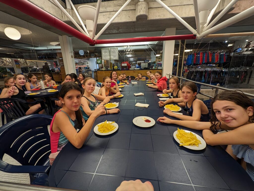 Das Jahr endete für die Mädchenriege mit gleich zwei Schlussturnen. Zum ersten Mal nahm die Mädchenriege am Jugi-Schlussturnen teil. Am Mittwoch veranstalteten wir unser eigenes Schlussturnen im Hallenbad, bei dem wir uns nach den ganzen Anstrengungen und unseren Bemühungen, die Leiter ins Wasser zu schupsen, mit Pommes stärkten und gemeinsam das erfolgreiche Jahr ausklingen liessen.