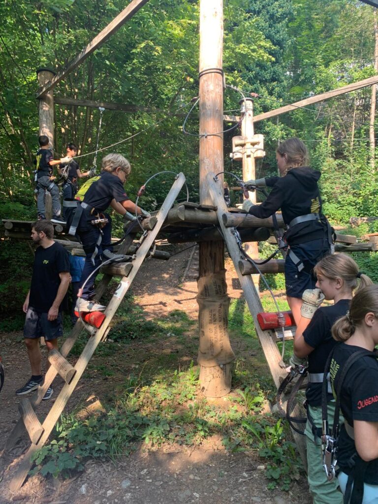 Nach den Sommerferien ging es weiter mit dem Jugendausflug. In schwindelerregender Höhe balancierten wir von Baum zu Baum im Kletterpark am Rheinfall und genossen anschliessend dessen atemberaubenden Anblick. Diese Action-Abenteuer schweissten uns noch enger zusammen und liessen uns Grenzen überwinden.